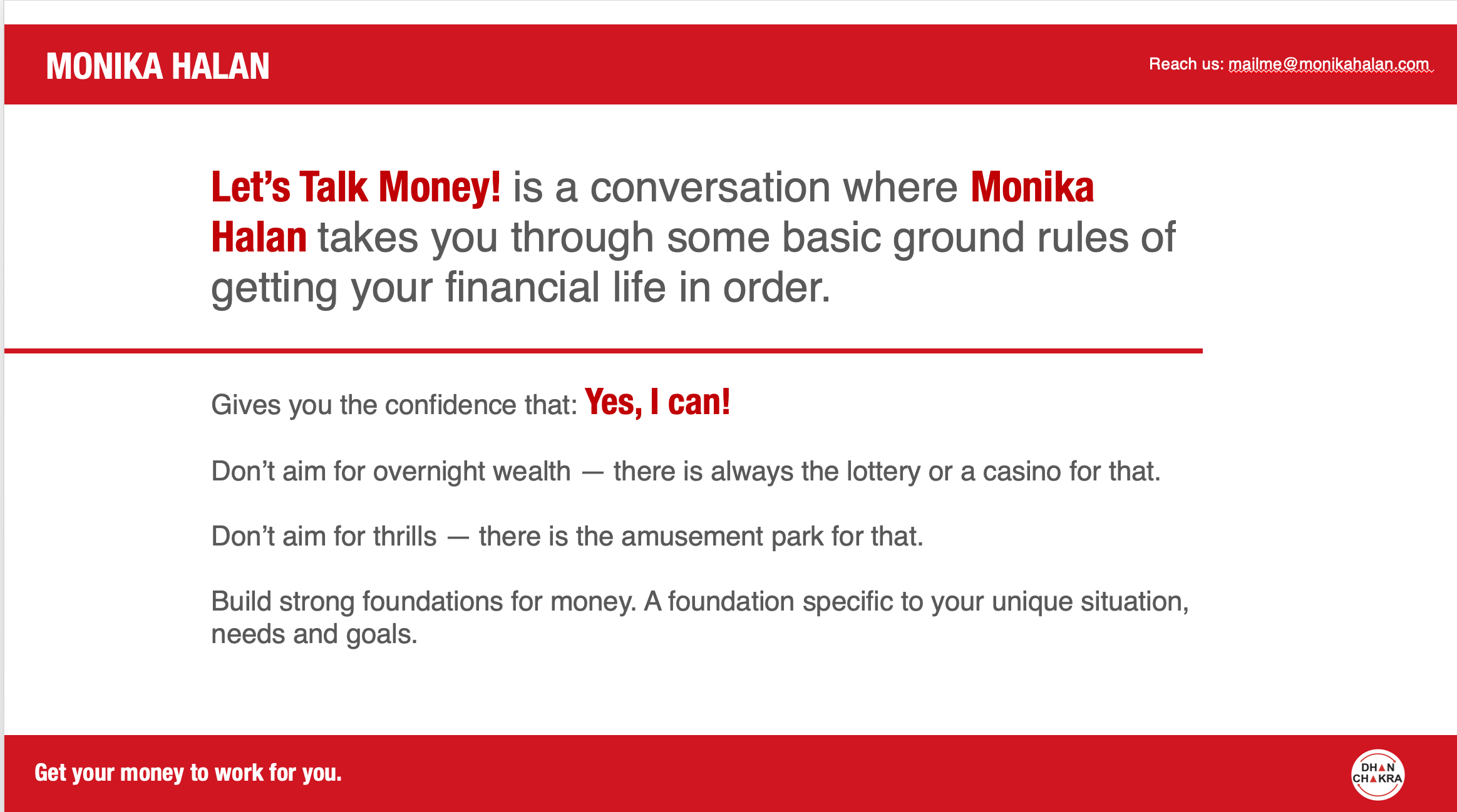 "I give no stock tips. I run no groups or channels. Please beware of fakes. My work is in education only." - Monika Halan