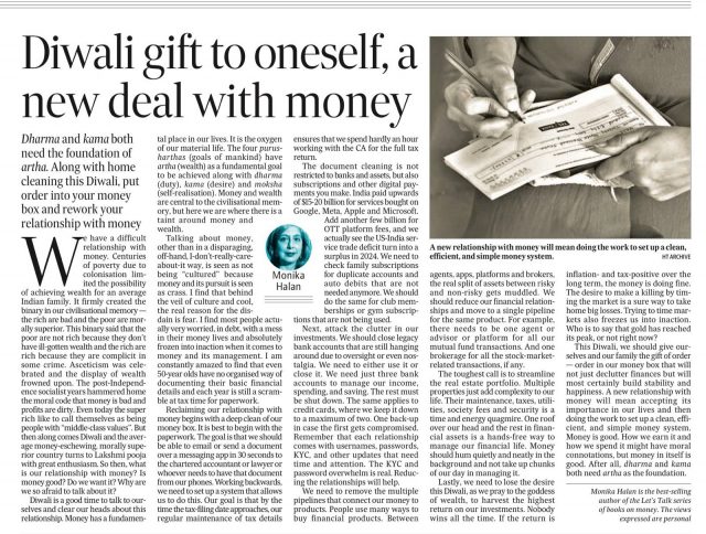 We have a difficult relationship with money. Centuries of poverty due to colonisation limited the possibility of achieving wealth for an average Indian family. It firmly created the binary in our civilisational memory — the rich are bad and the poor are morally superior. This binary said that the poor are not rich because they don’t have ill-gotten wealth and the rich are rich because they are complicit in some crime. Asceticism was celebrated and the display of wealth frowned upon. The post-Independence socialist years hammered home the moral code that money is bad and profits are dirty. Even today the super rich like to call themselves as being people with “middle-class values”. But then along comes Diwali and the average money-eschewing, morally superior country turns to Lakshmi pooja with great enthusiasm. So then, what is our relationship with money? Is money good? Do we want it? Why are we so afraid to talk about it?
