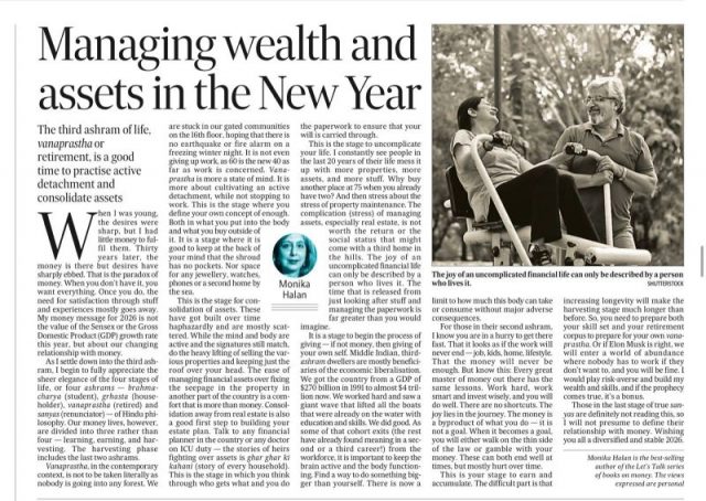 When I was young, the desires were sharp, but I had little money to fulfil them. Thirty years later, the money is there but desires have sharply ebbed. That is the paradox of money. When you don’t have it, you want everything. Once you do, the need for satisfaction through stuff and experiences mostly goes away. My money message for 2026 is not the value of the Sensex or the Gross Domestic Product (GDP) growth rate this year, but about our changing relationship with money.